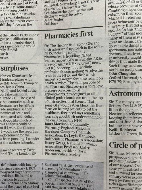 Sneering at other NHS clinical professionals does nothing to solve the crisis in the NHS or the nation’s health. Competition between healthcare providers has been exacerbated in the health service for many years by the way in which services are commissioned. This does not excuse the appalling rhetoric we have seen this week, and which we know sadly some pharmacists have to deal with on a regular basis, but it does underline once again why we need Government to facilitate the shift from competition to collaboration, or from fragmentation to integration, as it delivers its Ten-Year Health Plan.